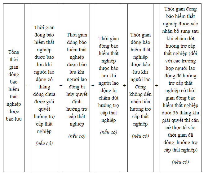 Lưu ý: Đối với các trường hợp tại điểm (2), (3), (4) thì thời gian đóng bảo hiểm thất nghiệp được bảo lưu không bao gồm số tháng đóng bảo hiểm thất nghiệp chưa được giải quyết hưởng trợ cấp thất nghiệp tại Quyết định về việc hưởng trợ cấp thất nghiệp đã được cơ quan bảo hiểm xã hội bảo lưu.