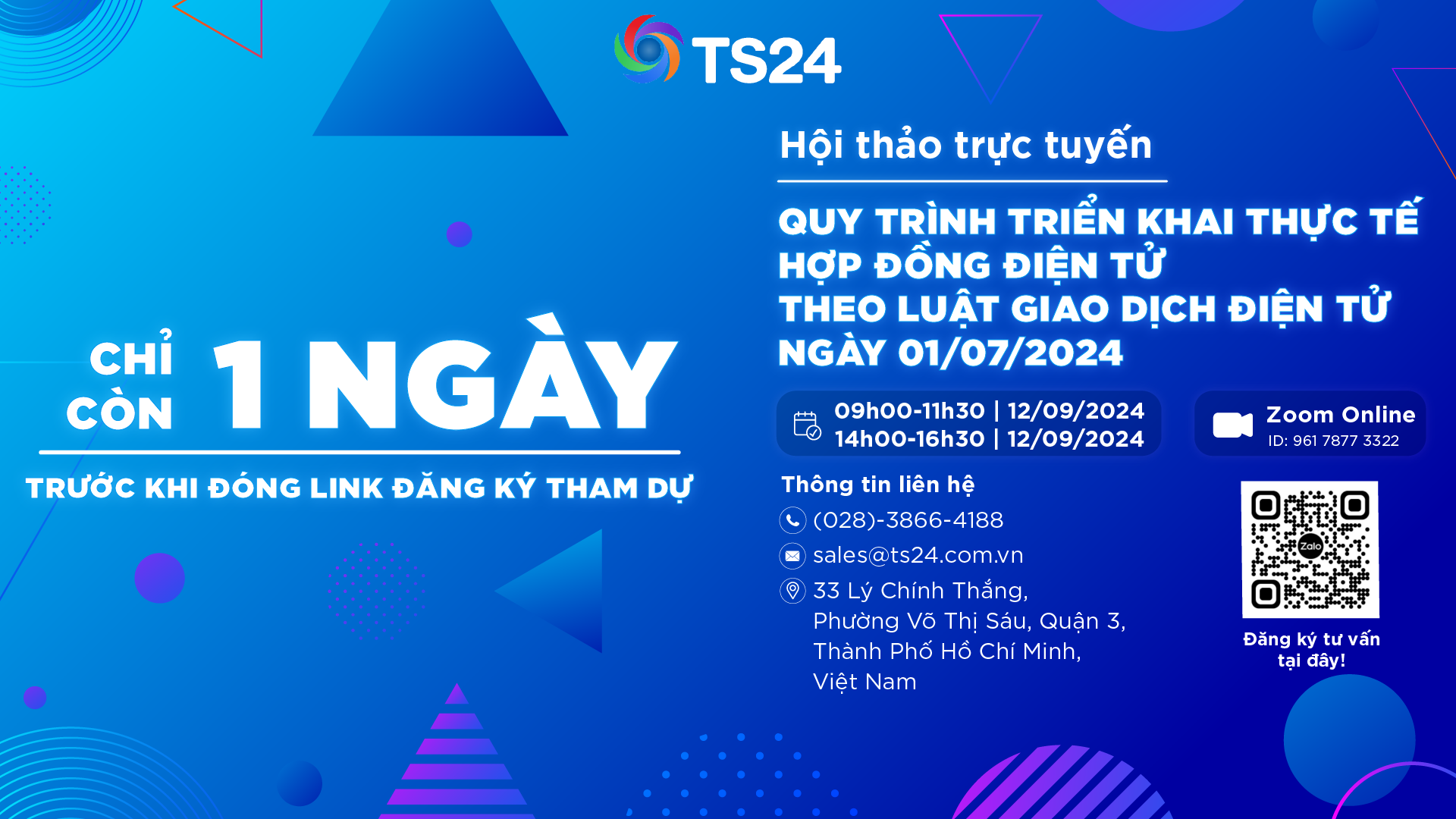 Vậy là chỉ còn một ngày cuối cùng trước khi link tham dự hội thảo của TS24 chính thức khép lại.