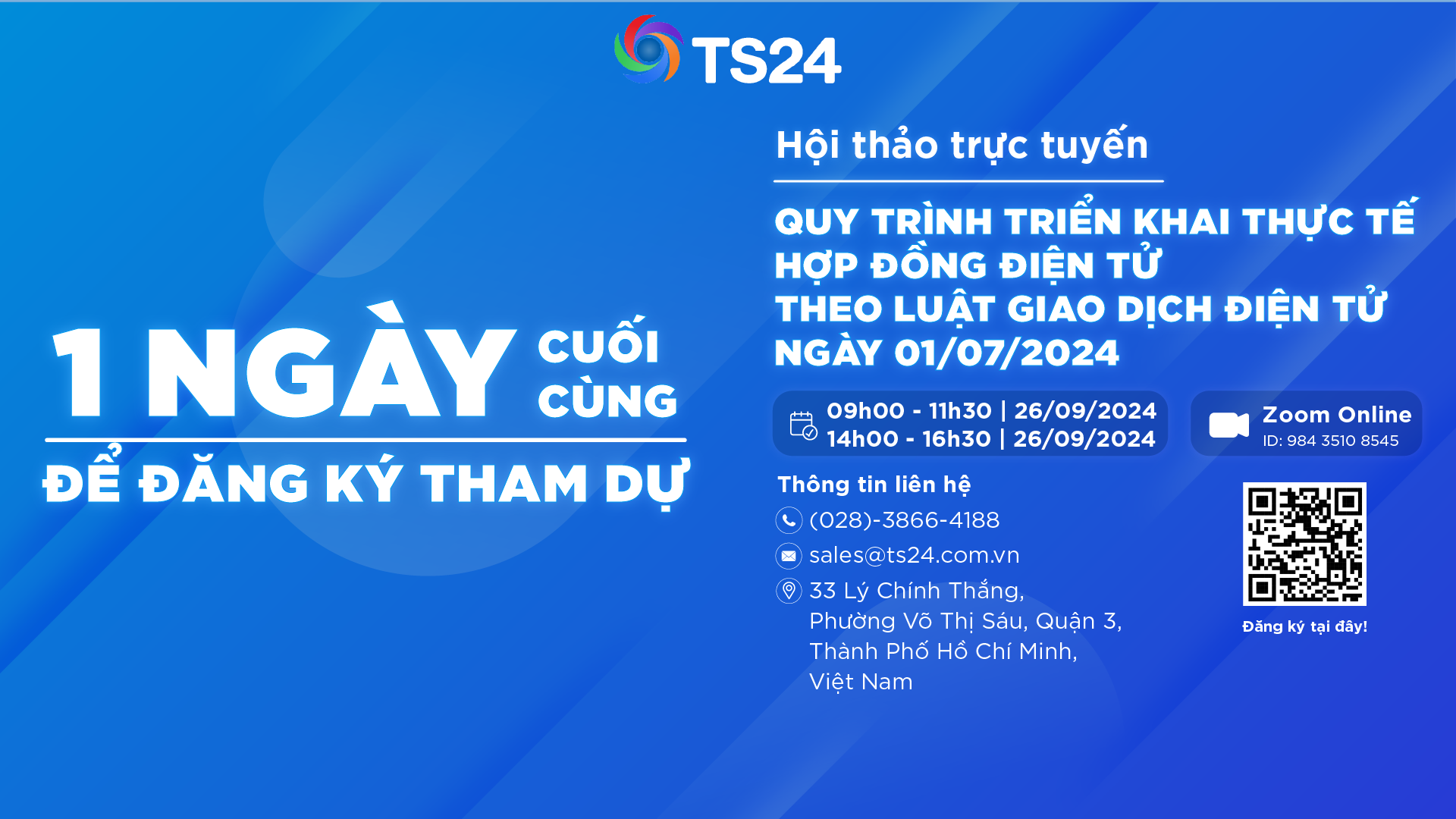 Vậy là chỉ còn một ngày cuối cùng trước khi link tham dự hội thảo của TS24 chính thức khép lại.