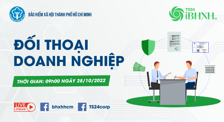 Bảo hiểm xã hội Tp.Hồ Chí Minh đồng hành cùng Công ty CP TS24 tổ chức buổi livestream trực tuyến "Đối Thoại Doanh Nghiệp". Với sự tham gia hướng dẫn, chia sẻ của Lãnh đạo BHXH TP. HCM, buổi đối thoại sẽ cung cấp cho các đơn vị những thông tin hữu ích về cách chính sách BHXH, BHTN, BHYT được cập nhật theo quy định mới nhất, chính xác nhất từ tháng 10/2022.