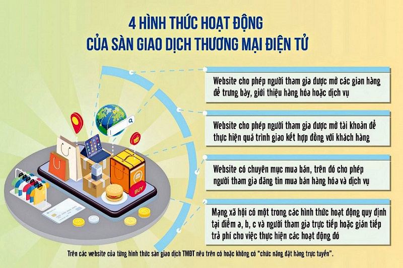 Ngày 25/9/2021, Chính phủ ban hành Nghị định số 85/2021/NĐ-CP (Nghị định 85) sửa đổi, bổ sung một số điều của Nghị định số 52/2013/NĐ-CP về TMĐT đã đưa ra các hình thức hoạt động của sàn giao dịch TMĐT.