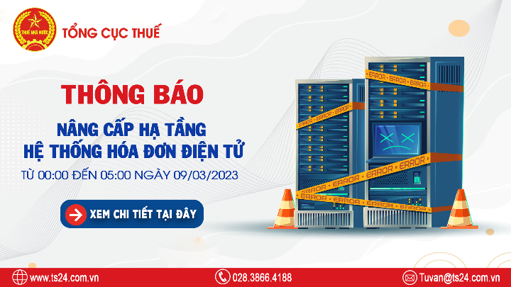 Cơ quan Thuế (Cục CNTT) thông báo nâng cấp hệ thống Hoá đơn điện tử.