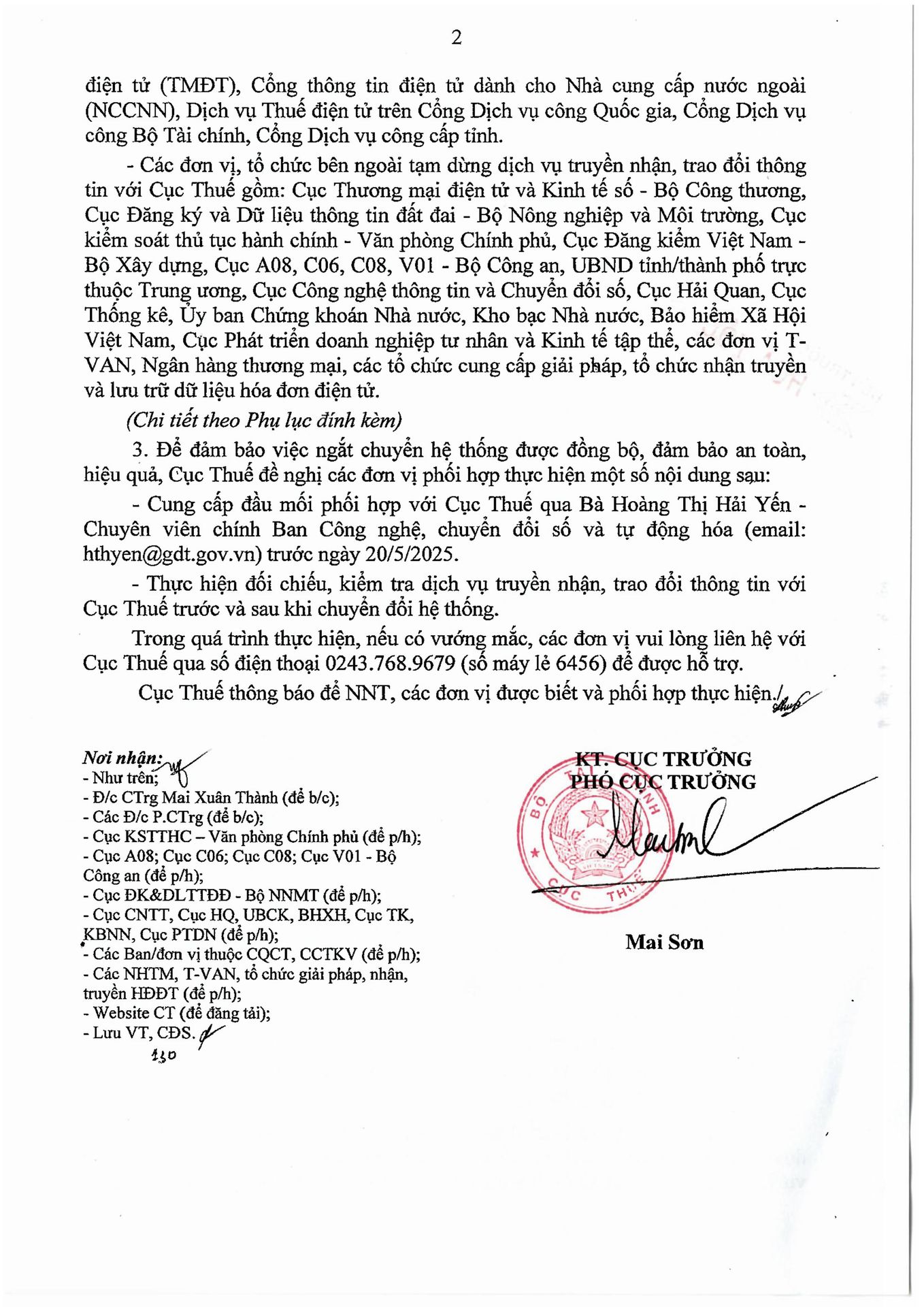 Đề nghị Quý khách hàng chủ động thực hiện các thủ tục thuế, ký hóa đơn trước thời gian tạm dừng để tránh gián đoạn công việc.