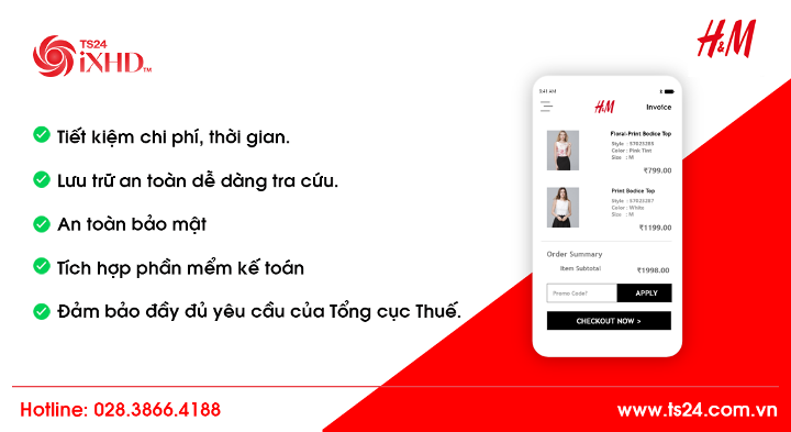 • H&M đã phát hành hóa đơn điện tử cho khách hàng một cách nhanh chóng và chính xác, không cần in ấn, vận chuyển hay lưu trữ hóa đơn giấy.