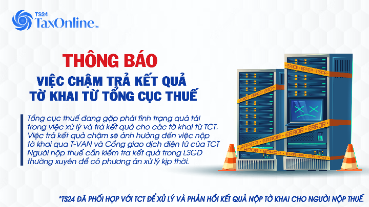 Tổng cục thuế đang gặp phải tình trạng quá tải trong việc xử lý và trả kết quả cho các tờ khai từ TCT. Việc trả kết quả chậm sẽ ảnh hưởng đến việc nộp tờ khai qua T-VAN và Cổng giao dịch điện tử của Tổng cục thuế.