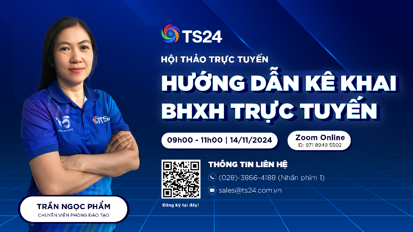 Mời Quý Khách hàng tham gia buổi hội thảo trực tuyến: "Hướng dẫn kê khai BHXH trực tuyến" cùng các chuyên gia của TS24!
