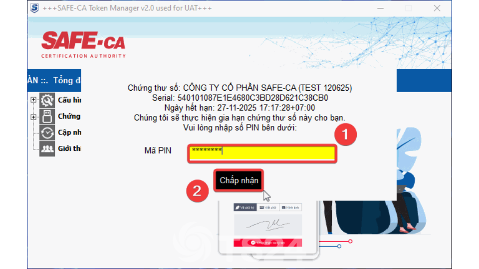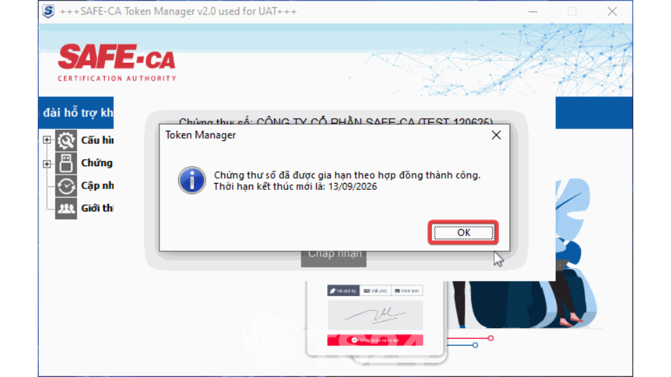 Bước 3: SAFE-CA Token Manager sẽ hiển thị thông báo cấp bù thời hạn tự động.