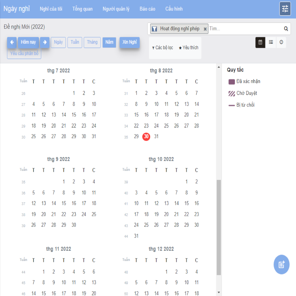 Thực hiện quy trình nghỉ phép theo chính sách nghỉ phép của doanh nghiệp quy định trên nguyên tắc tuỳ biến nhiều loại hình nghỉ phép theo nhiều mức duyệt…