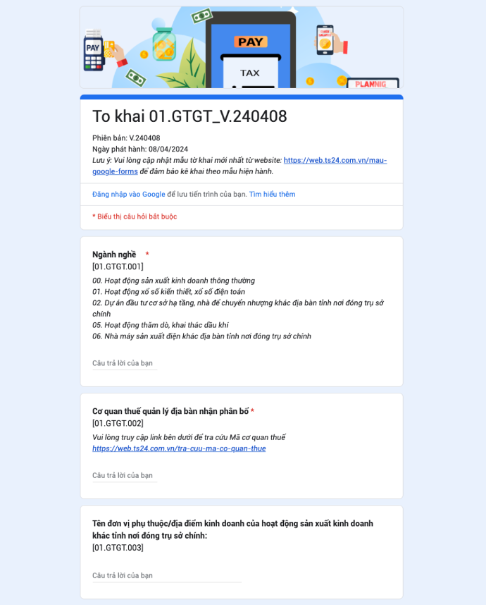 Dùng Google Forms để điền file mẫu Excel tờ khai thuế GTGT (01/GTGT theo TT 80/2021/TT-BTC) cho TaxOnline