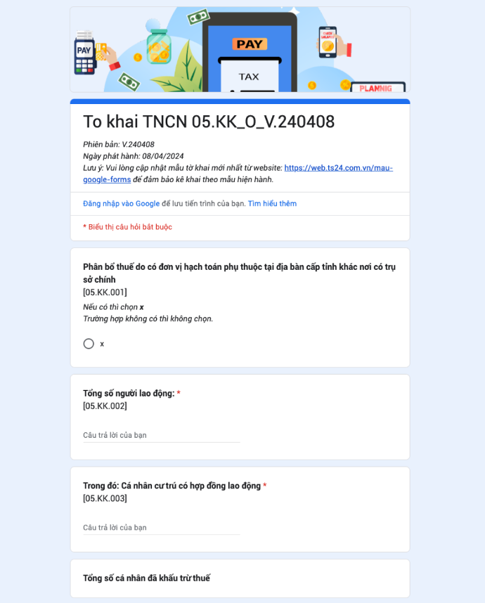 Dùng Google Forms để điền file mẫu Excel tờ khai thuế TNCN với thu nhập từ tiền lương, tiền công (05/KK-TNCN theo TT 80/2021/TT-BTC) cho TaxOnline
